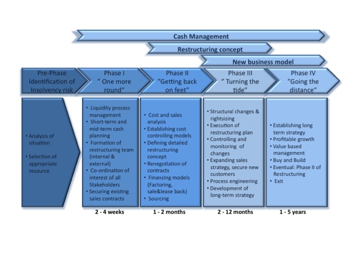 Efficient cash management is the foundation for every successful turnround. A typical timeline of a turnaround process shown in this graph: